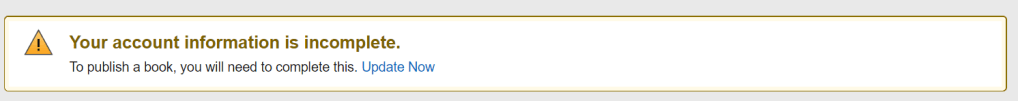 You will see a notification at the top about your account information being incomplete. Click the blue Update Now link.