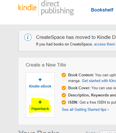 Now that you’re back to the main KDP page, click the + Paperback button.